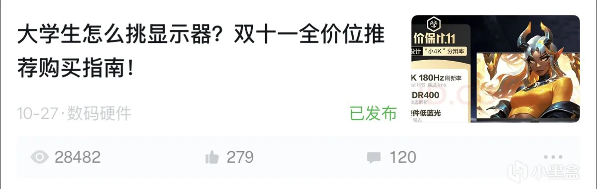 前阵子双十一做过一篇显示器推荐,介绍各个价位显示器的优缺点,帮助了很多小伙伴但是依旧有很多小伙伴迷茫纠结https://api.xiaoheihe.cn/v3/bbs/app/api/web/share?link_id=d0f97110a664